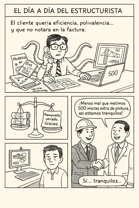 Es bastante habitual que, durante la redacción del proyecto, se vayan introduciendo múltiples cambios (nuevos huecos en forjados, desplazamiento de pilares, ajustes en instalaciones). Todo esto supone más trabajo para el estructurista. En el fondo, esto refleja la paradoja de Jevons: cuanto más eficientes somos, más carga de trabajo asumimos.
